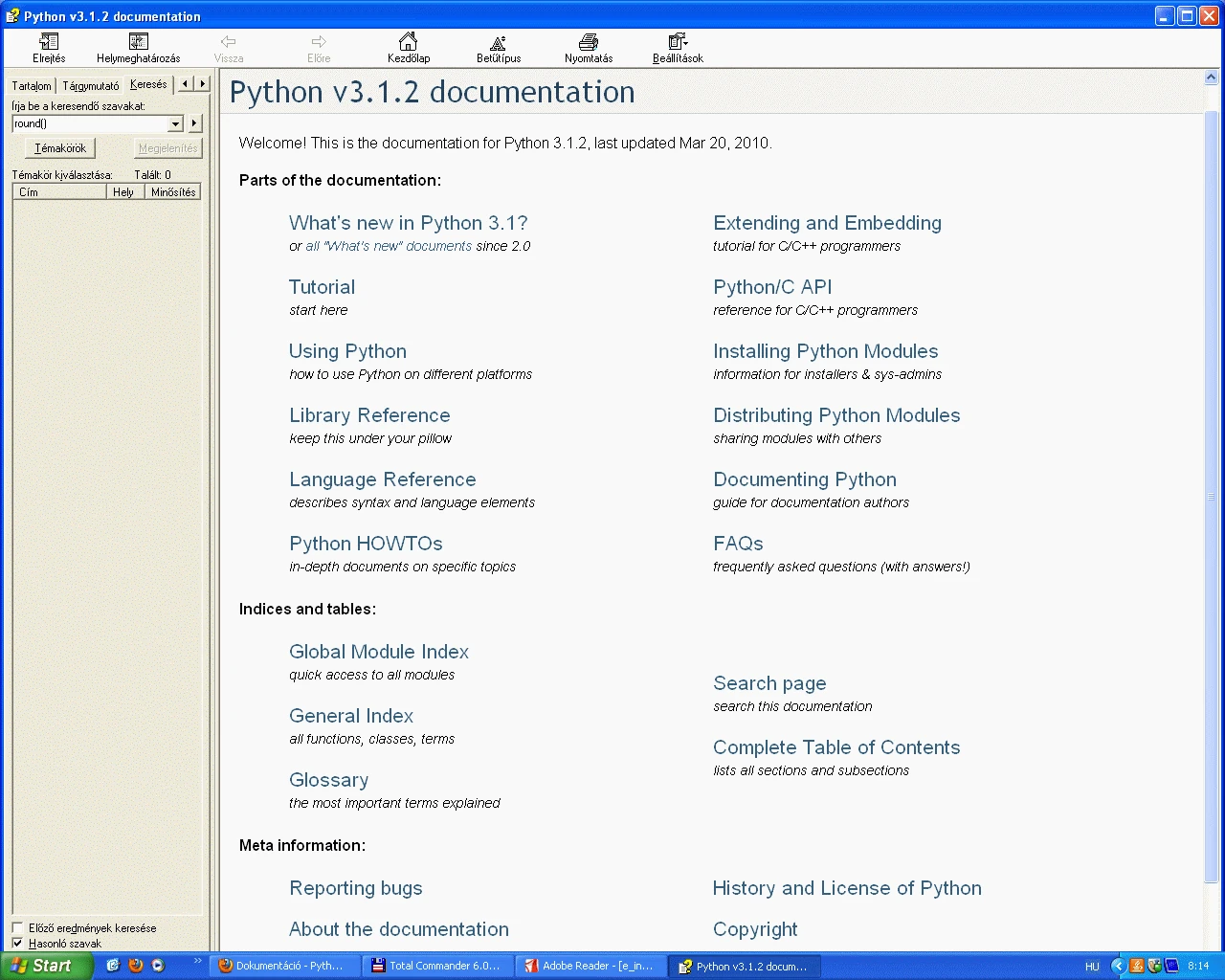 A Python dokumentációját két majdnem azonos tartalommal érhetjük el.